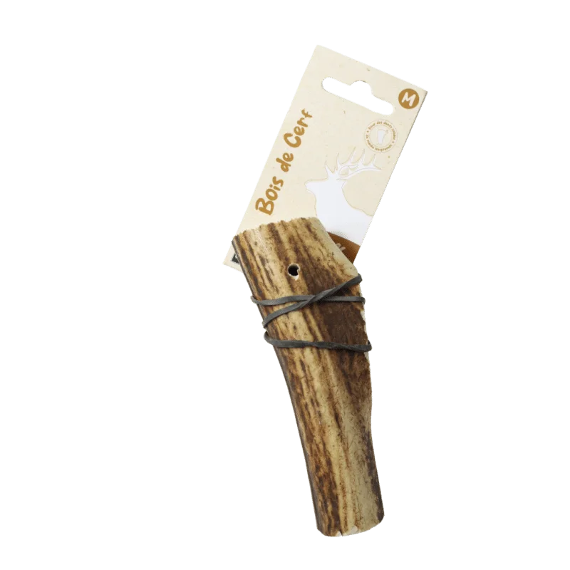 Le bois de cerf entier pour chien est une friandise naturelle, saine et apaisante, qui participe à l’entretien des dents, des articulations et du bien-être général de votre compagnon. Une alternative idéale aux os industriels ou aux produits transformés, disponible en taille M ou L.