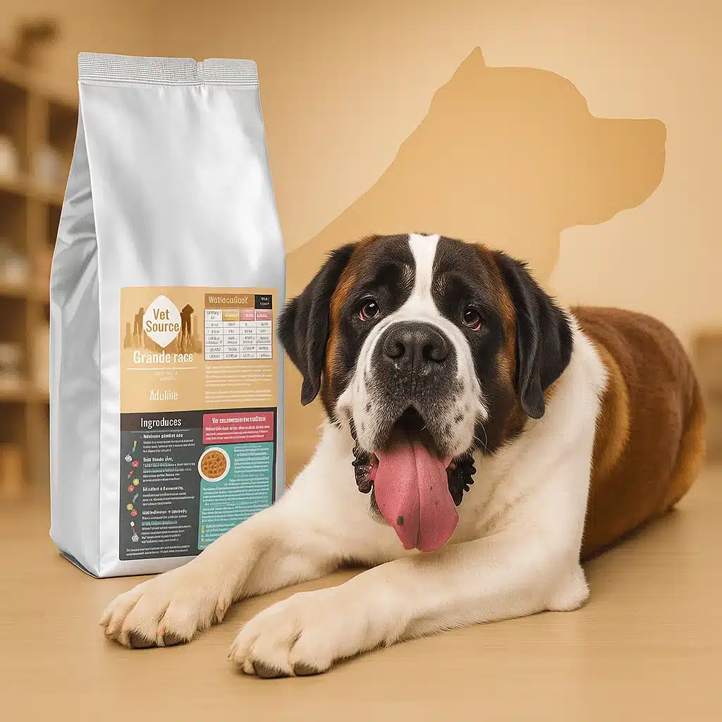 Les croquettes VetSaveur pour chien grande race ont été formulées pour répondre aux besoins spécifiques des chiens de plus de 35 kg, avec une attention particulière portée sur la digestibilité, le confort articulaire et la vitalité globale.