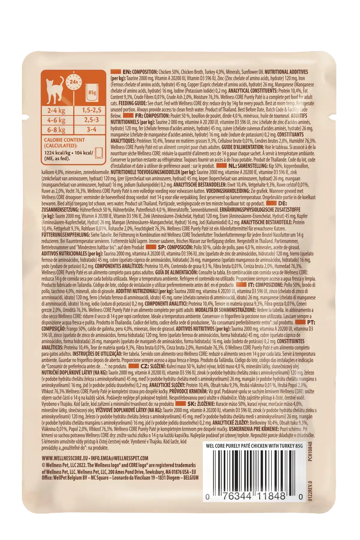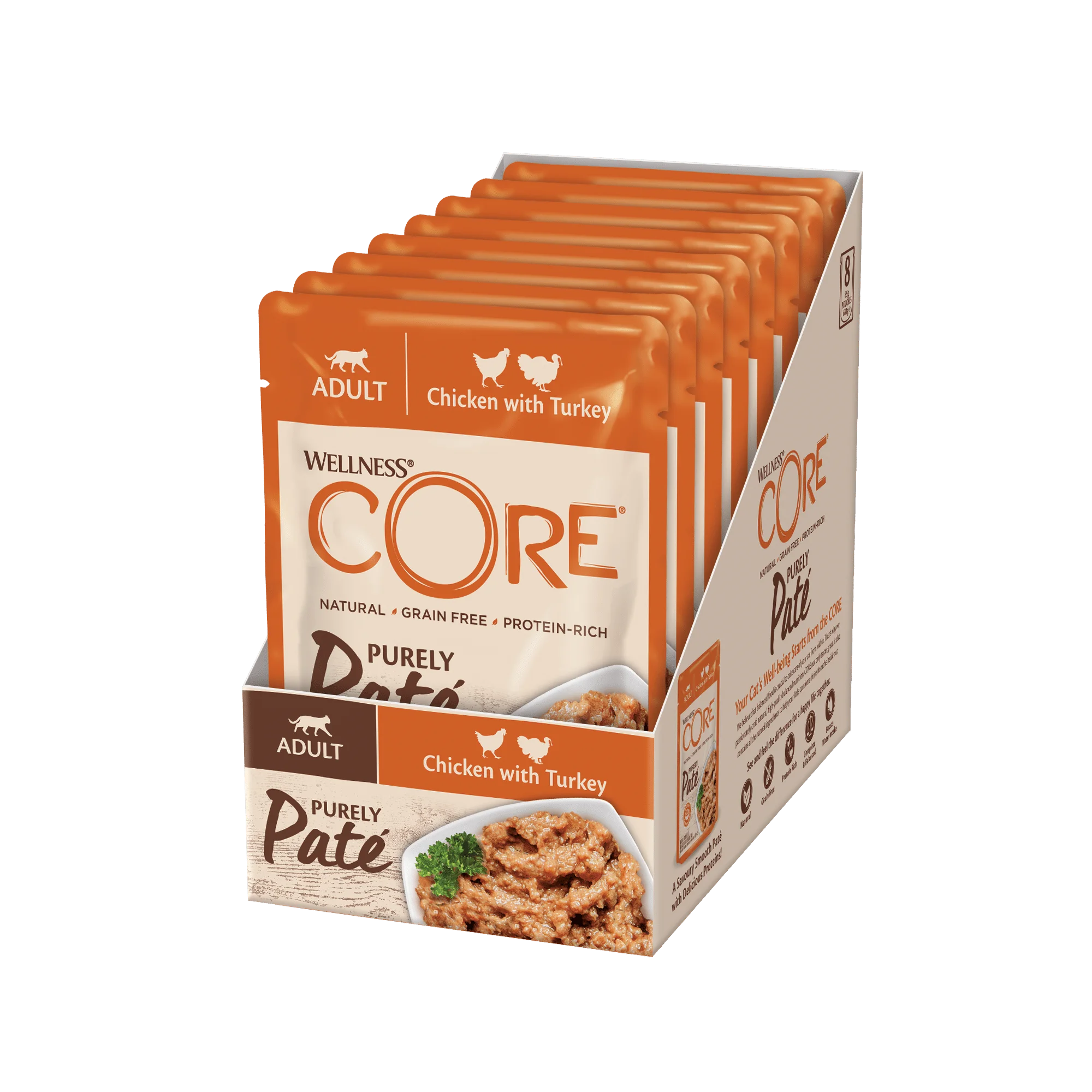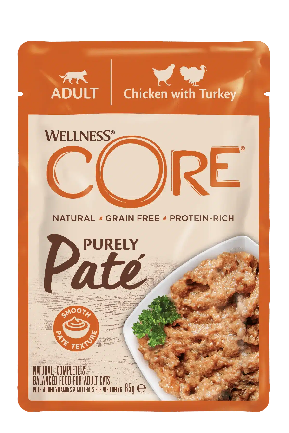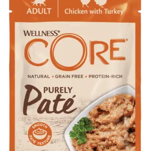 Les chats sont des carnivores stricts dont les besoins physiologiques sont comblés par une alimentation riche en viande. La recette Wellness Core Purely Paté – Poulet avec Dinde est conçue pour respecter cette logique nutritionnelle, en alliant appétence, digestibilité et équilibre.